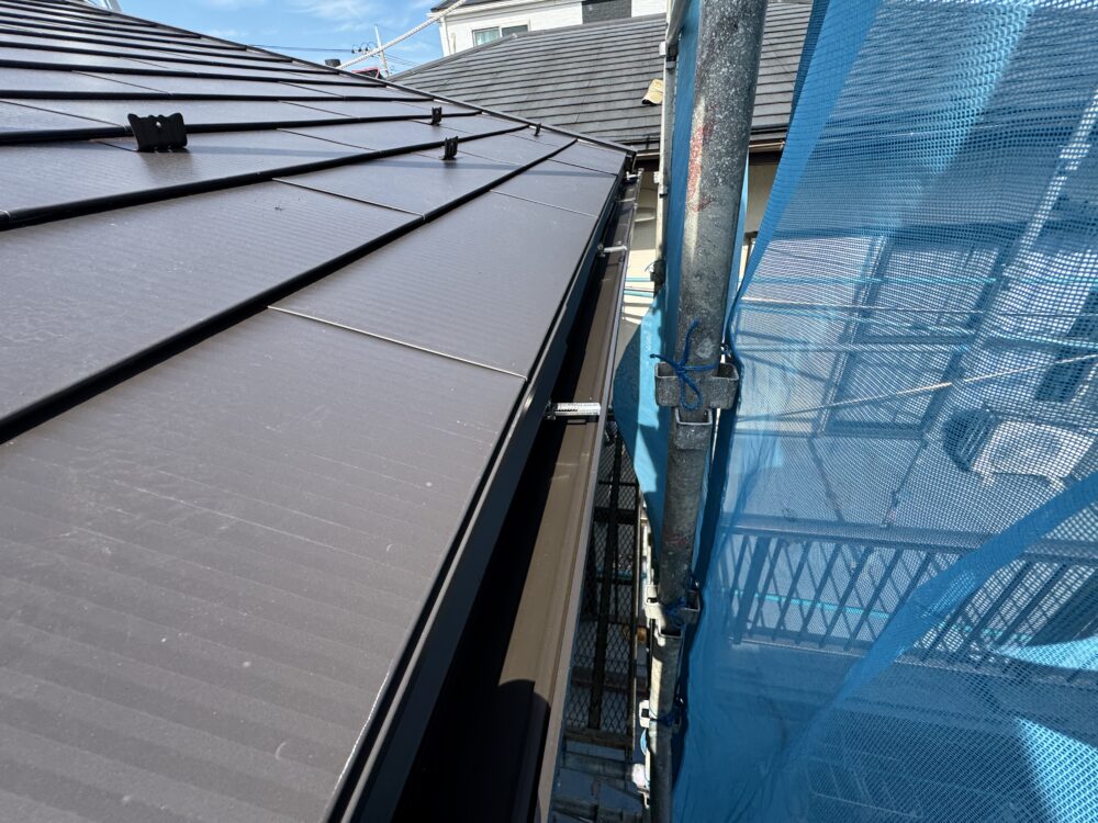 新しい屋根材はガルバリウム鋼板という、耐久性の高い屋根材を利用しており、お客様もご高齢の方なので、屋根のメンテナンスを最後にしたいとのご要望で、ご提案しました!